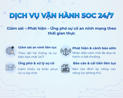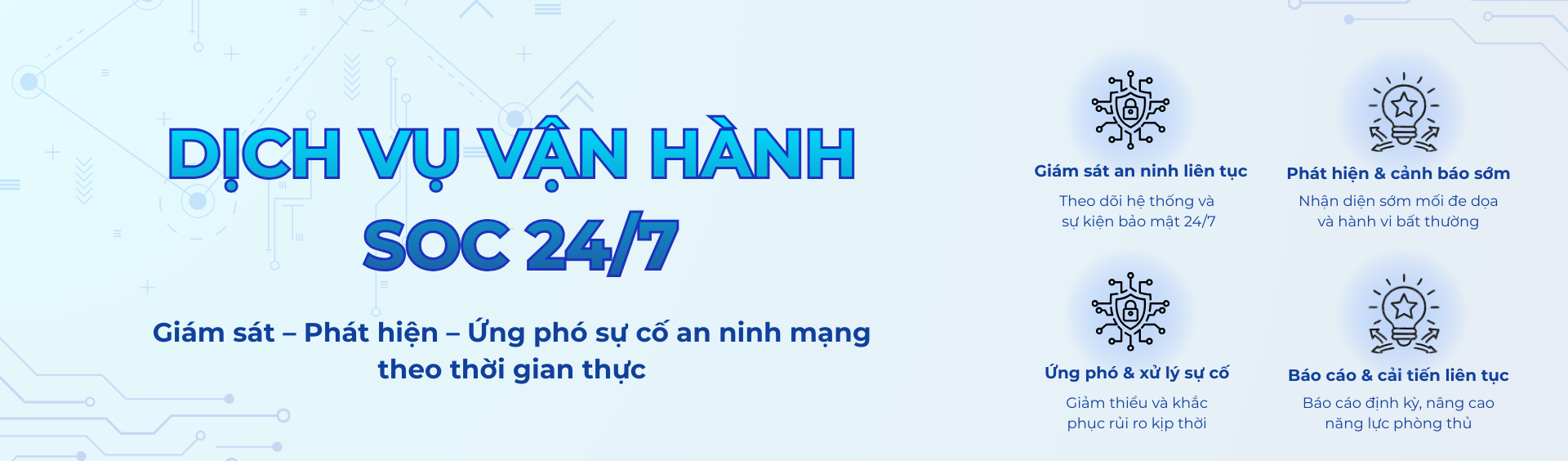 Chúng tôi không chỉ là nhà cung cấp dịch vụ, mà còn là đối tác tin cậy, giúp khách hàng giải quyết các thách thức về vận hành và bảo mật an toàn thông tin một cách toàn diện và hiệu quả nhất. Với sứ mệnh bảo vệ dữ liệu và thông tin quan trọng của khách hàng, chúng tôi luôn sẵn lòng đồng hành và hỗ trợ khách hàng trong mọi tình huống.