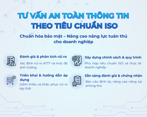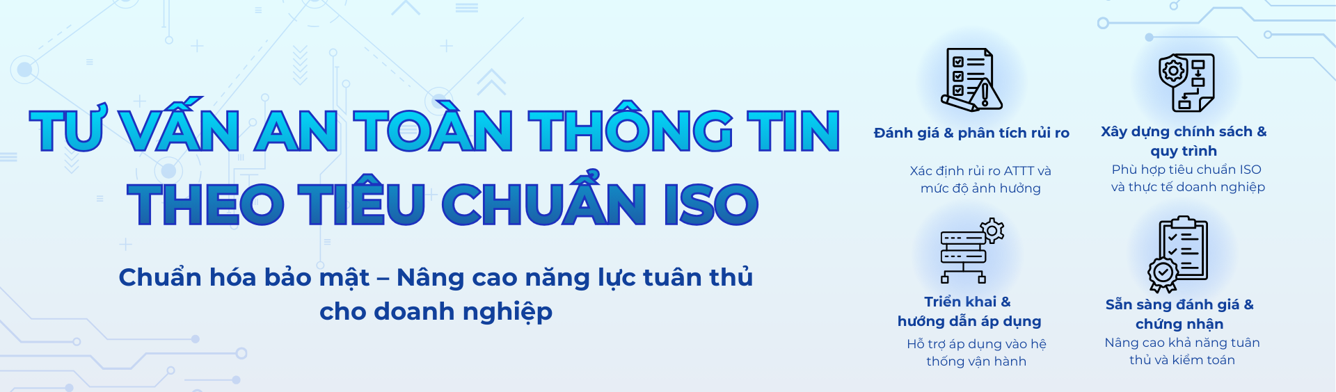 Chúng tôi luôn lắng nghe và thấu hiểu nhu cầu của khách hàng để tư vấn và triển khai các dịch vụ an toàn thông tin theo tiêu chuẩn như ISO/IEC, đánh giá ATTT…, giúp doanh nghiệp xây dựng hệ thống quản lý ATTT bảo mật hiệu quả, phù hợp và bền vững.